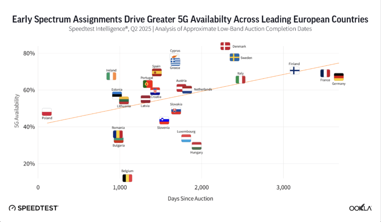 “El análisis de la relación entre la disponibilidad de 5G y el calendario de subastas de espectro en Europa confirma que las políticas pueden obstaculizar el despliegue cuando retrasan indebidamente la liberación de espectro”,señala Ookla.