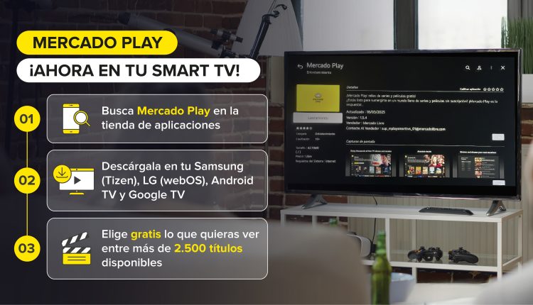 Mercado Play,el servicio de streaming de Mercado Libre,llega a los televisores de los hogares. La plataforma prevé que su alcance crezca,ya que los usuarios podrán disfrutar de películas,series y documentales directamente en sus Smart TVs.